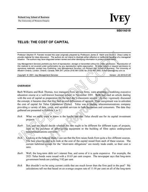 NHM - Online PDF TELUS THE COST OF CAPITAL CASE SOLUTION Nook Google eBookstore